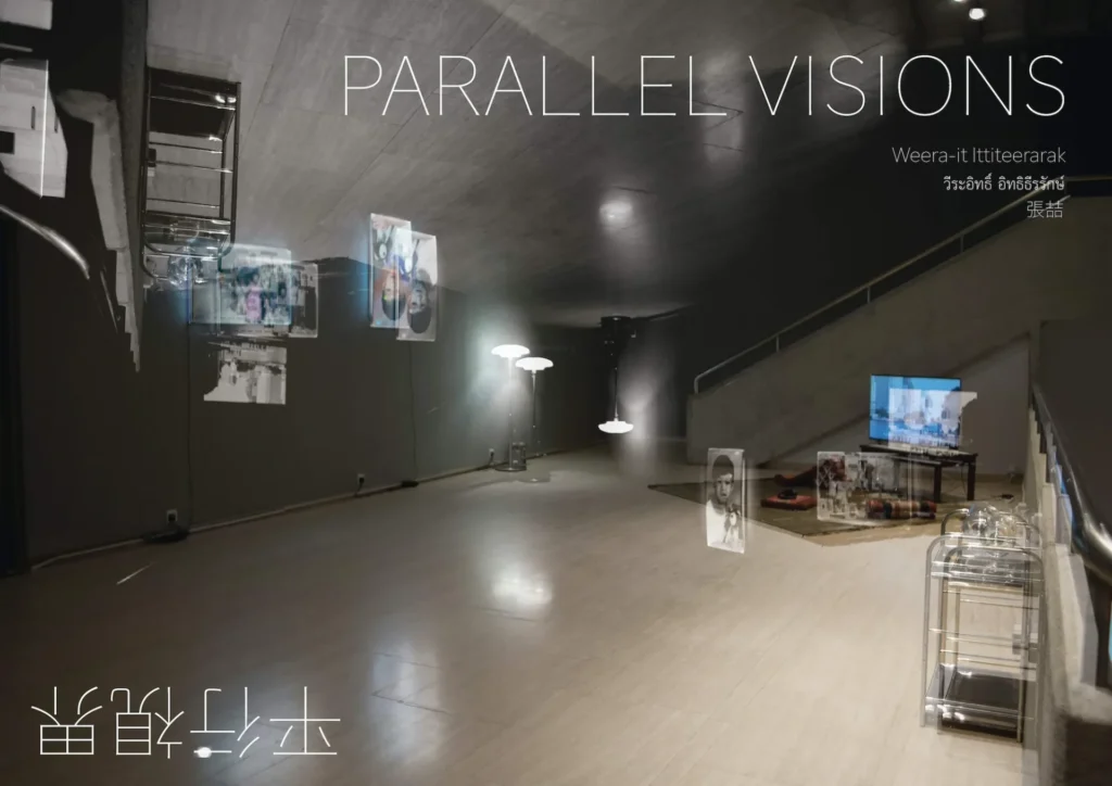 (Left) M.F.A.Thesis exhibition, Parallel Visions, on-site exhibition installation view, at Art Museum of The Chinese University of Hong Kong, 2023