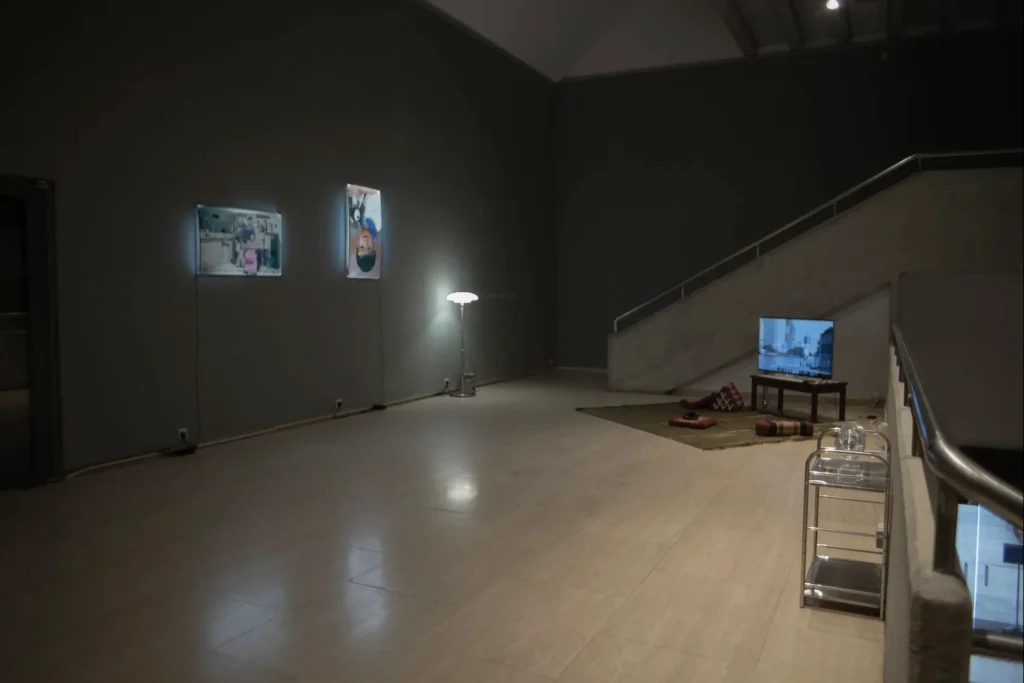 在某種程度上,展覽場地本身施加了一些限制,這些限制因此成為特定場域元素的角色,隨後成為轉化和形成藝術品的構成材料。禁止懸掛物品、更改照明位置和固定電線等限制,成為了一種構圖的調色板。水泥半牆、不銹鋼扶手、石灰色棉麻牆面和淺啡木紋地磚為氛圍做出了貢獻。因此,為了建立獨特的氛圍,這些受限因素自然地納入了創作考慮中。雖然這些藝術品最初是在緊湊的居家空間內製作,然後再在展覽場地上組裝,但事前的場地調查記錄了固有的照明強度、音調,甚至是在眾多作品中不銹鋼元素的整合,從而在展覽空間內的零星分散的創作之中培育出一種在地化的感覺。
